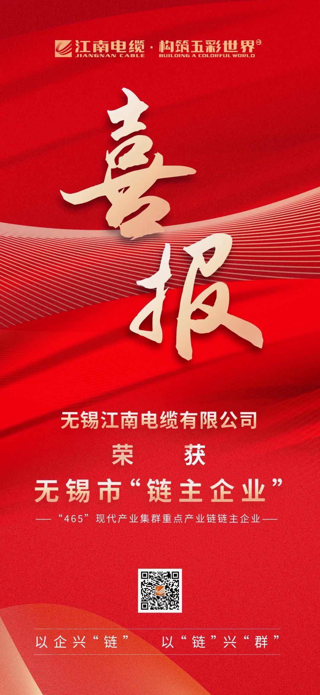 【喜報(bào)】江南電纜榮獲無(wú)錫市“鏈主企業(yè)”!